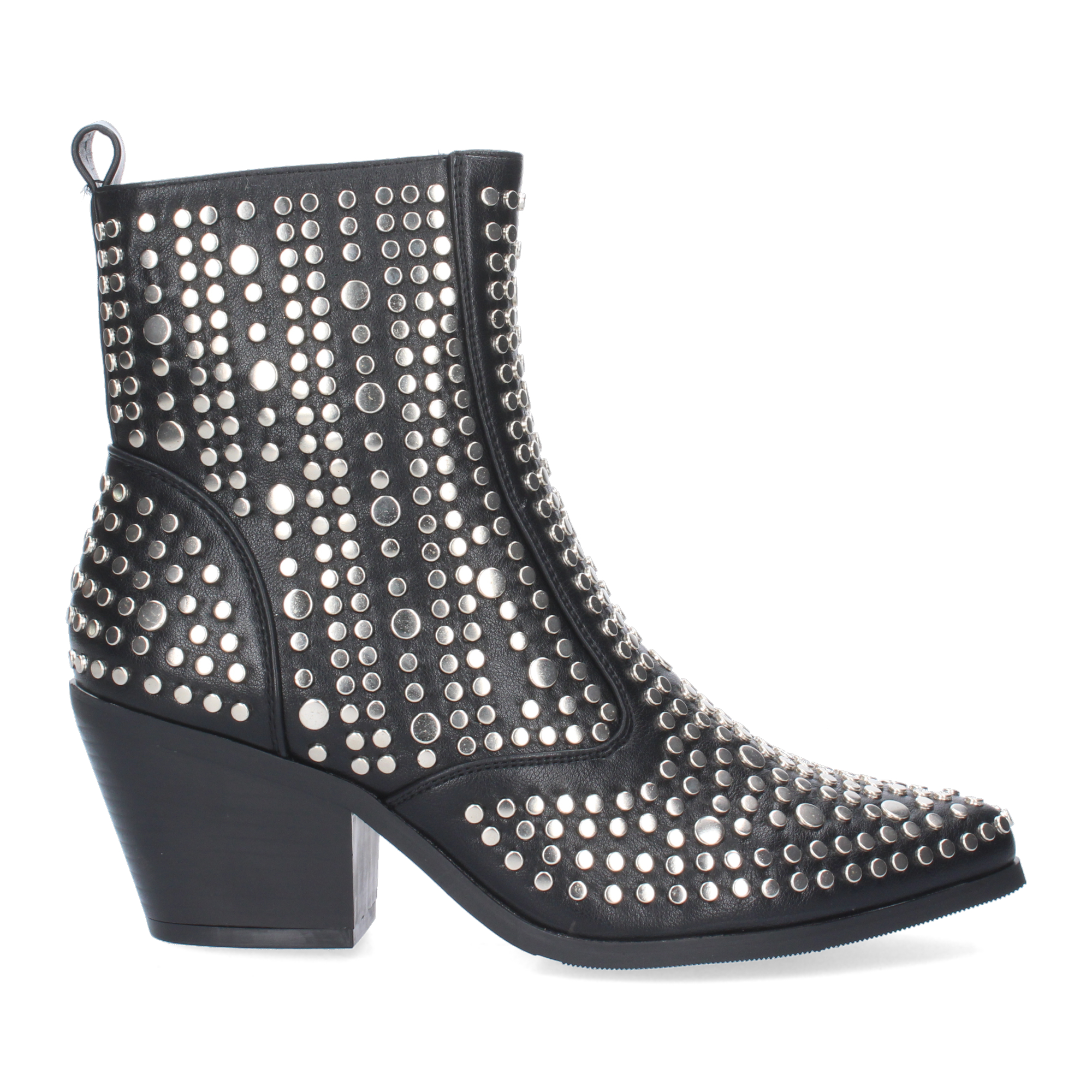 Botin de Mujer con Tacon de Punta Fina Adornado con Tachuelas Metalicas Oto?o Invierno 2023