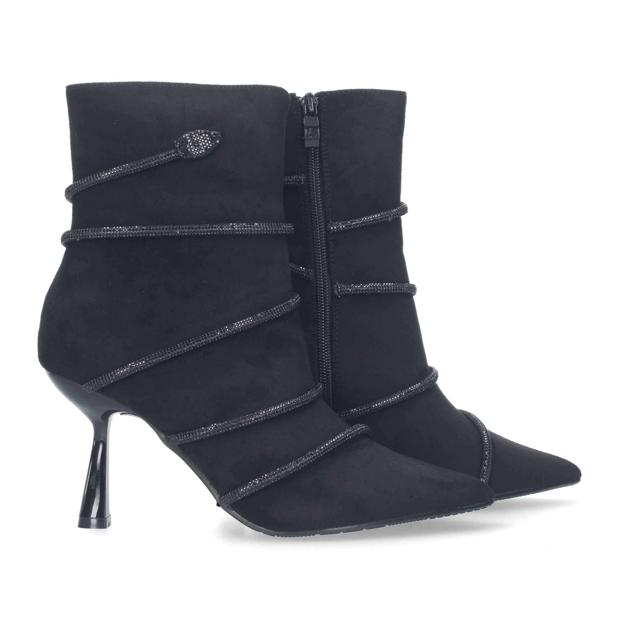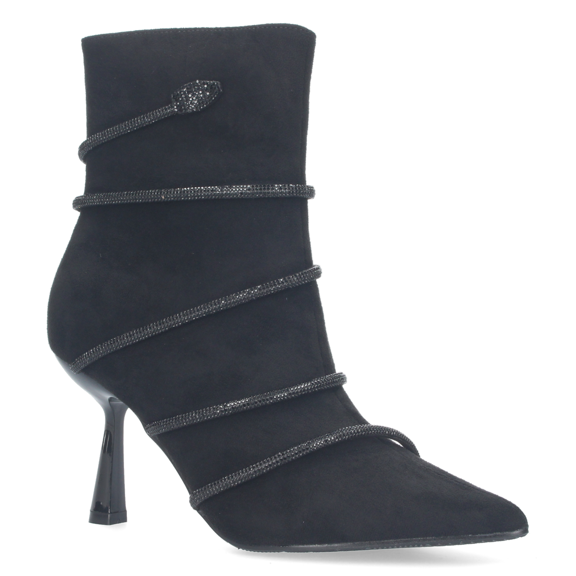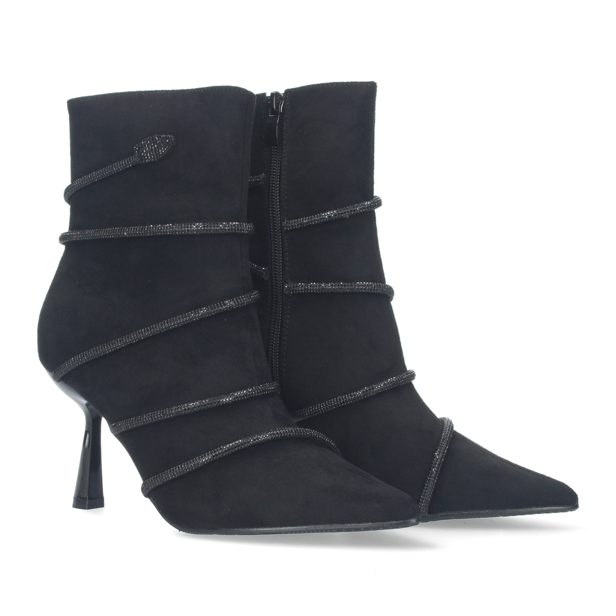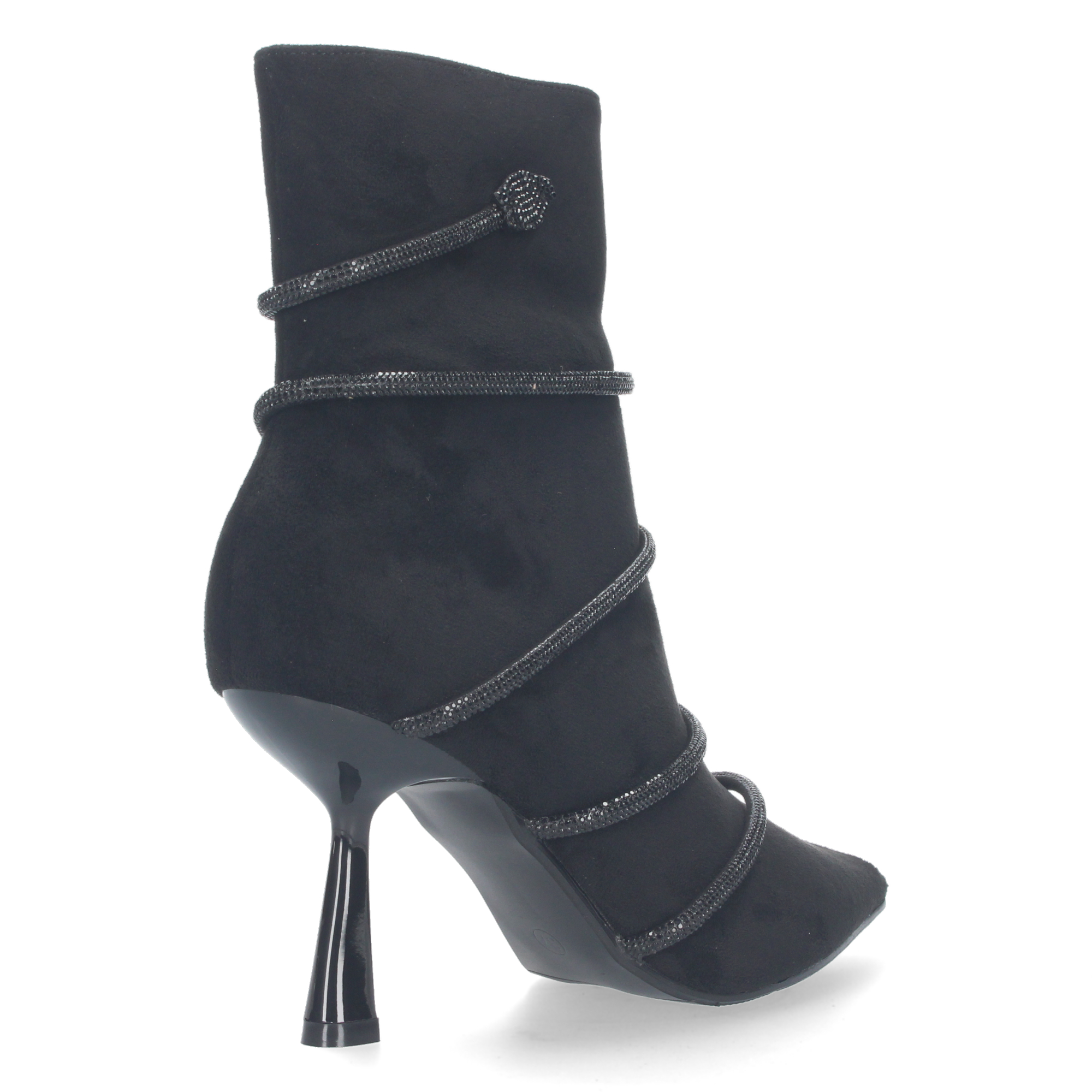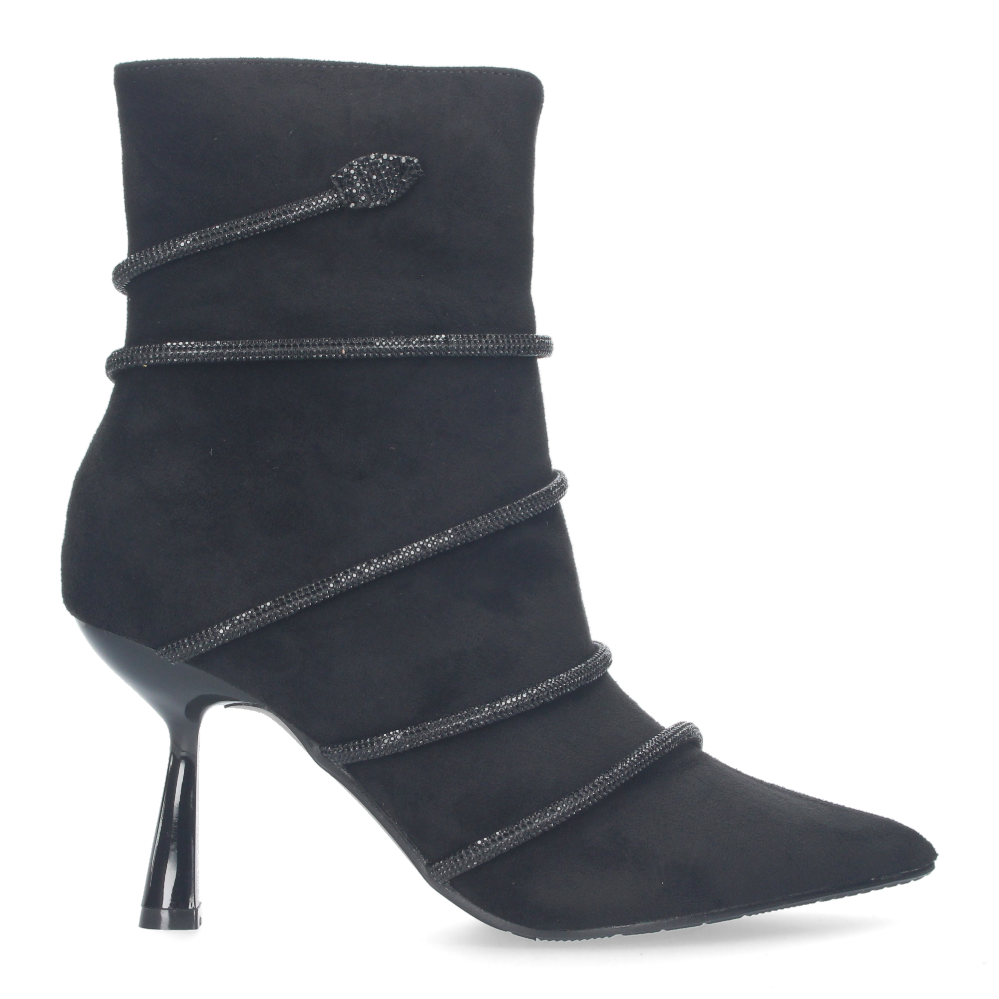Botin de tacon para mujer material aterciopelado y con adorno metalico con piedra de strass