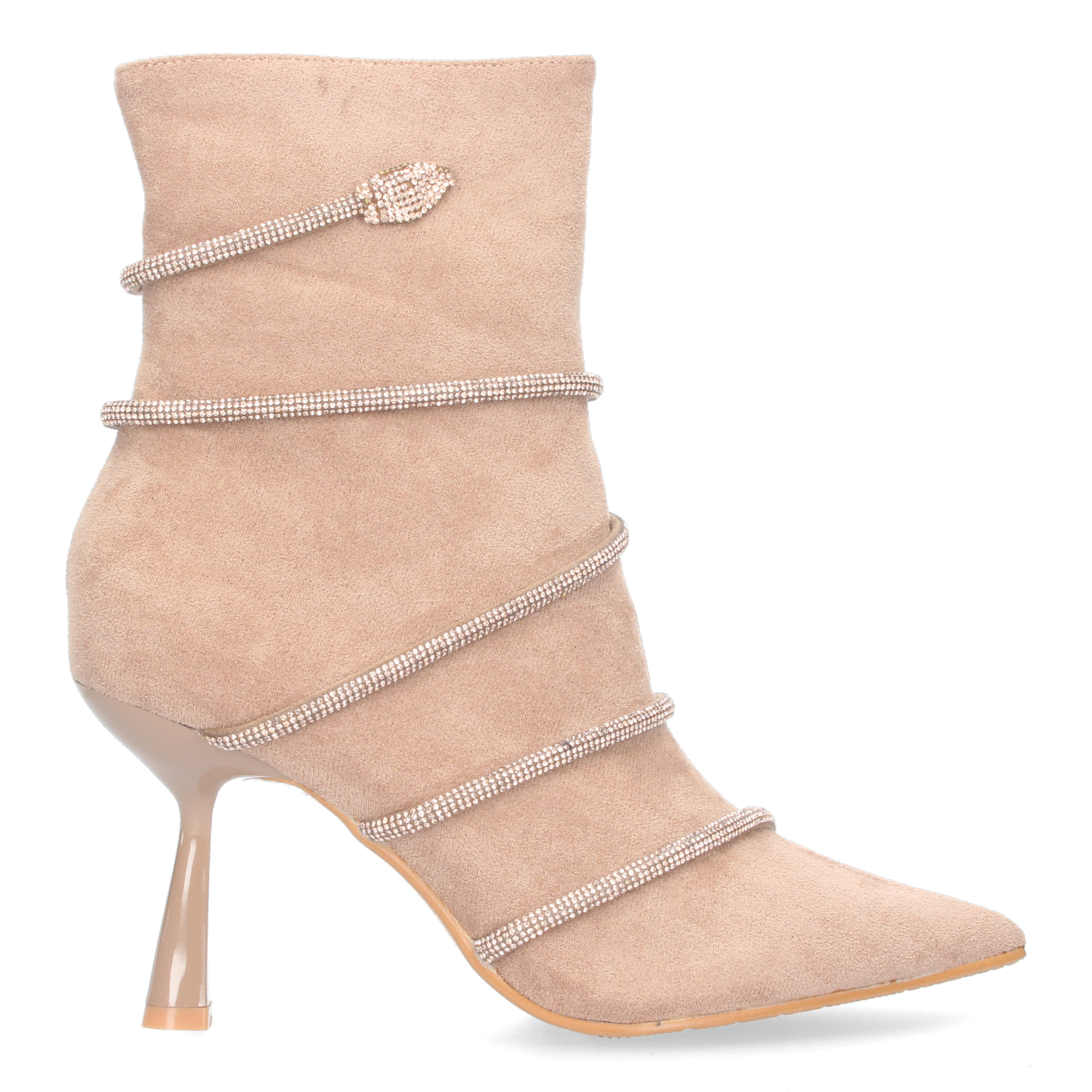 Botin de tacon para mujer material aterciopelado y con adorno metalico con piedra de strass